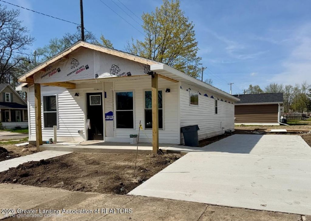 Why wait to build when you can move in today? Welcome to 608 Detroit St in Jackson MI! This is new construction to be finished May 2026. Built by VMG, this very sharp brand new built 950 sqft, 2 bedroom and 1 bath home blends thoughtful design with modern elegance. Situated right in the heart of Jacksons up-and-coming healthcare district neighborhood. This beautiful. modern, simplistic home features granite countertops. all high-efficient appliances and mechanicals, tankless water heater, 200amp electrical service, main floor laundry and lots of builder upgrades including 42 inch hallways and 36 inch door for handicap accessibility. Did you notice the super cute, covered front porch? How adorable is that. Nothing left to do but pack your bags and move in... Buyers agent to verify all information and measurements. New construction so there are no disclosures available. Photos are from an model home with the exact same floor plan. This is new construction to be finished May 2026.
